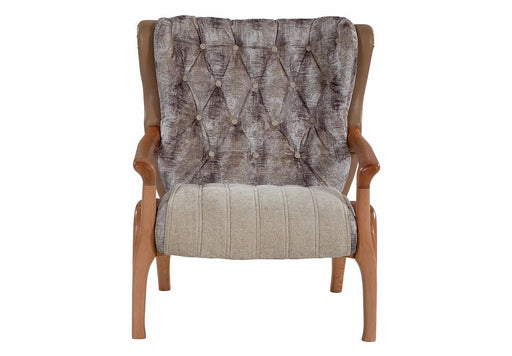 Vezi detalii completeFotoliu Bergere Lux Zen Asi Home, Lemn Nuc, Catifea Crem-Bej & Piele Ecologică Maro, 75x95 cm, Spătar Capitonat