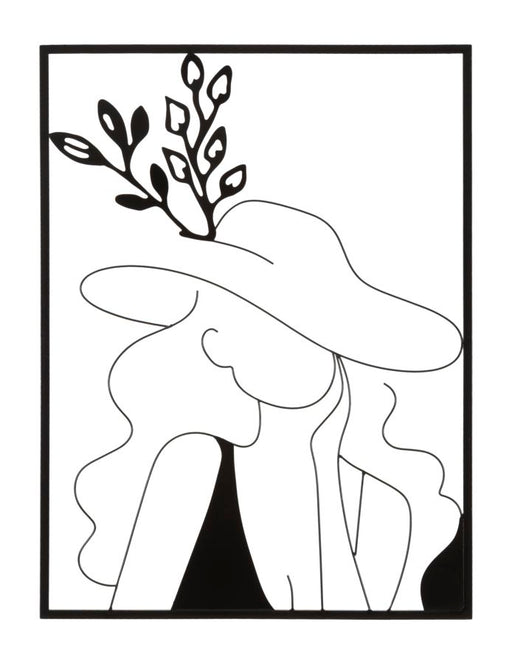 Mauro FerrettiPanou decorativ 3D de perete cu linii simple și esențiale care compun o figură feminină cu o pălărie elegantă, totul închis într-un cadru dreptungh...