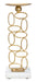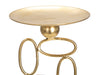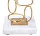 Suport de lumanare din metal auriu cu baza de marmura alba cu un design liniar si geometric si linii moi si sinuoase.