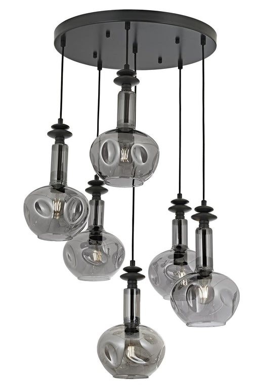 Lustră Avonni AV-1912-6T-GR, finisaj negru, Ø50 cm, 6xE27, metal și sticlă, design vintage elegant