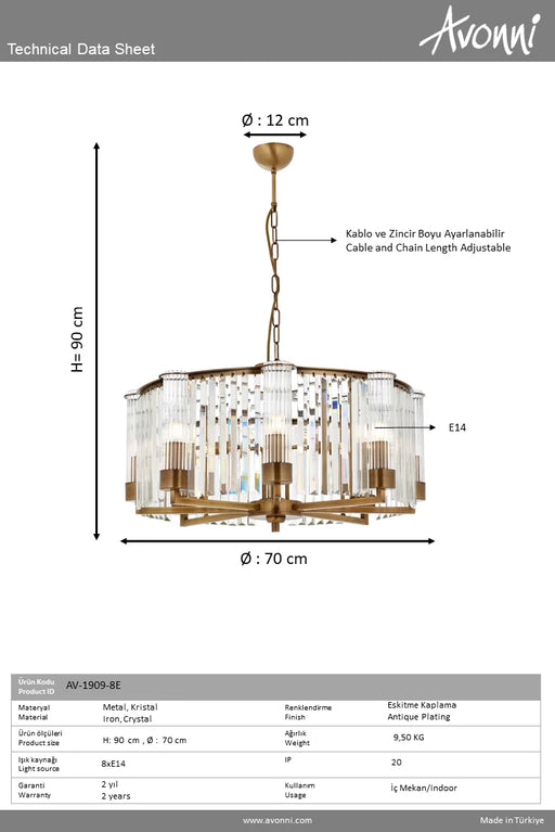 Avonni✨ Avonni, AV-1909-8E – Lustră cu finisaj antichizat, Ø70cm – iluminat premium marca Avonni! 💡 Dimensiuni: înălțime 90cm, Ø70cm ⚙️ Greutate: 10.0kg ...