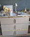 Consolă STAR ASI HOME, 220 cm, design futurist crem & auriu, MDF texturat, blat tip marmură, 6 compartimente