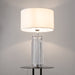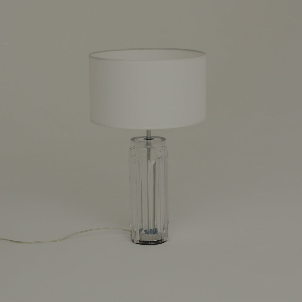 Structura din metal finisat cromat și baza cu detalii de sticlă reflectă lumina într-un mod subtil și elegant, în timp ce abajurul textil din bumbac oferă o difuzie plăcută a luminii. Cu o înălțime fixă de 520 mm și un diametru de 320 mm, Muse este perfectă pentru birouri, noptiere sau mese laterale.
