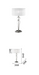 Bază și detalii din metal cromat. Elemente decorative din sticlă suflată și lucrată manual. Abajur din organza plisată.